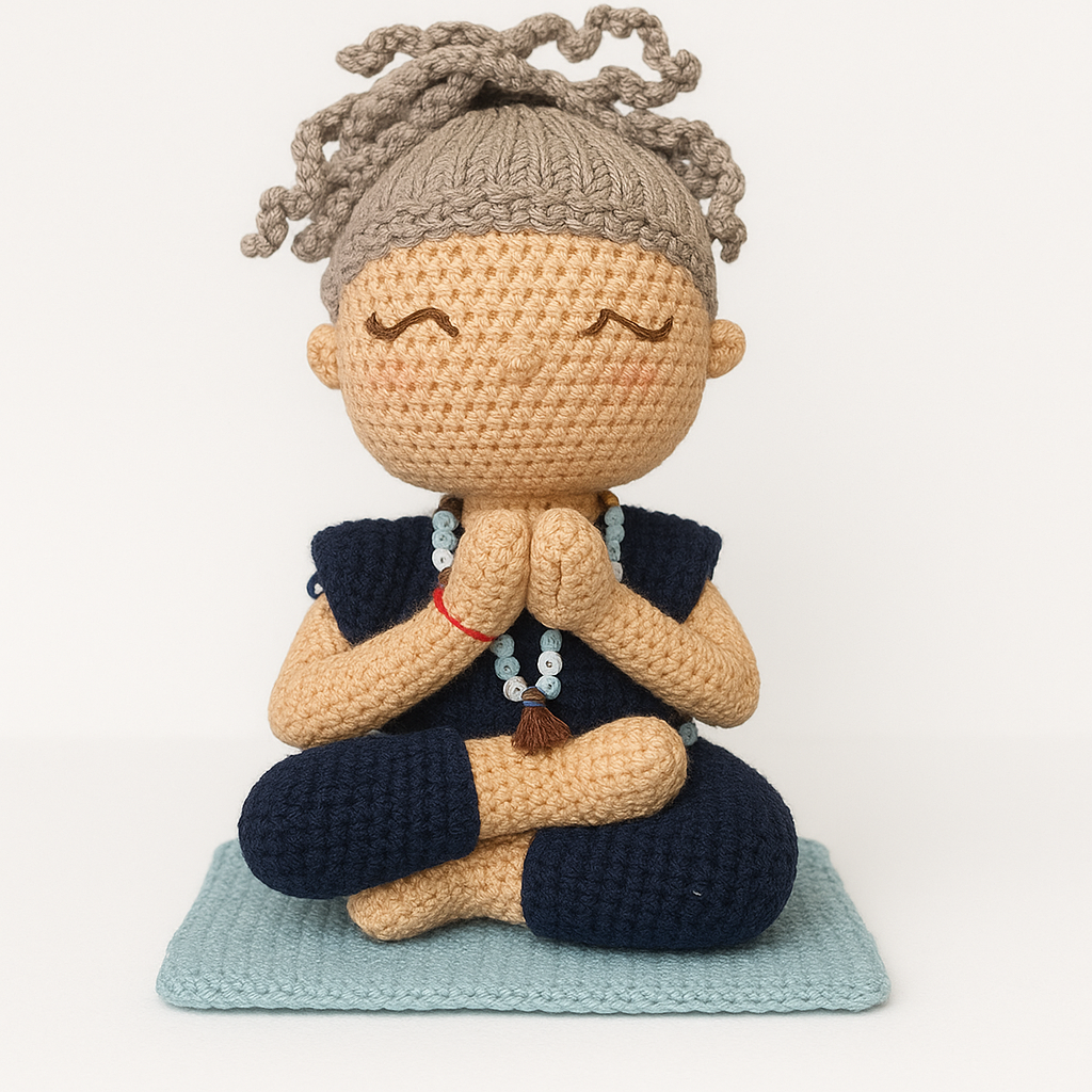Yoguini de crochet es un recordatorio de calma, fuerza interior y conexión con tu práctica espiritual. Hecha 100% a mano, está inspirada en la serenidad del yoga y en el poder de mantener la mente y el corazón en equilibrio. Puedes elegir el color del pelo, peinado y color de ropa y tapete.